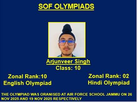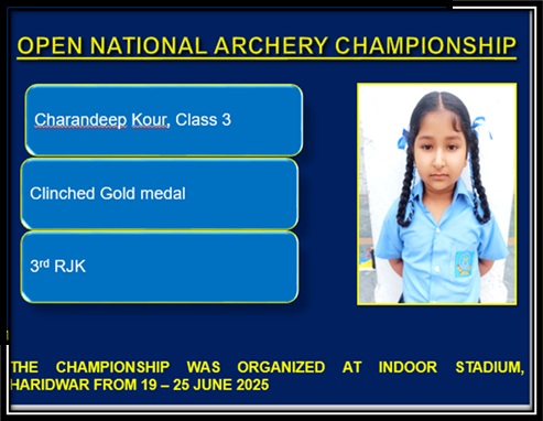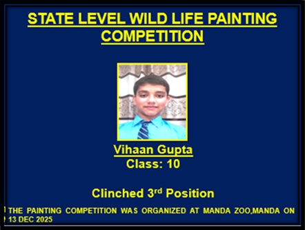 Digvijay of class VA participated in 5th Mt. Everest international Music & Dance championship 2025 at Rashtriya Nach Ghar Auditorium, Kathmandu, Nepal. Thirty participants from J&K showcased their talent and made India win the overall championship.