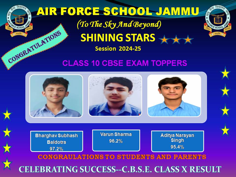 Air Force School Jammu strives for developing Physical, social, moral, intellectual and emotional development of the students and also it provides opportunities to develop creativity among students, encourage the students to work in groups and develop confidence, create awareness among the students to protect national and public property, to develop qualities of good citizenship among students, to develop scientific aptitude and attitude and to help in the progress of society and nation. The task of the Air Force School is to enable students to be people –centric and be responsible citizens of the world and to play their unique role in the betterment of society and mankind.