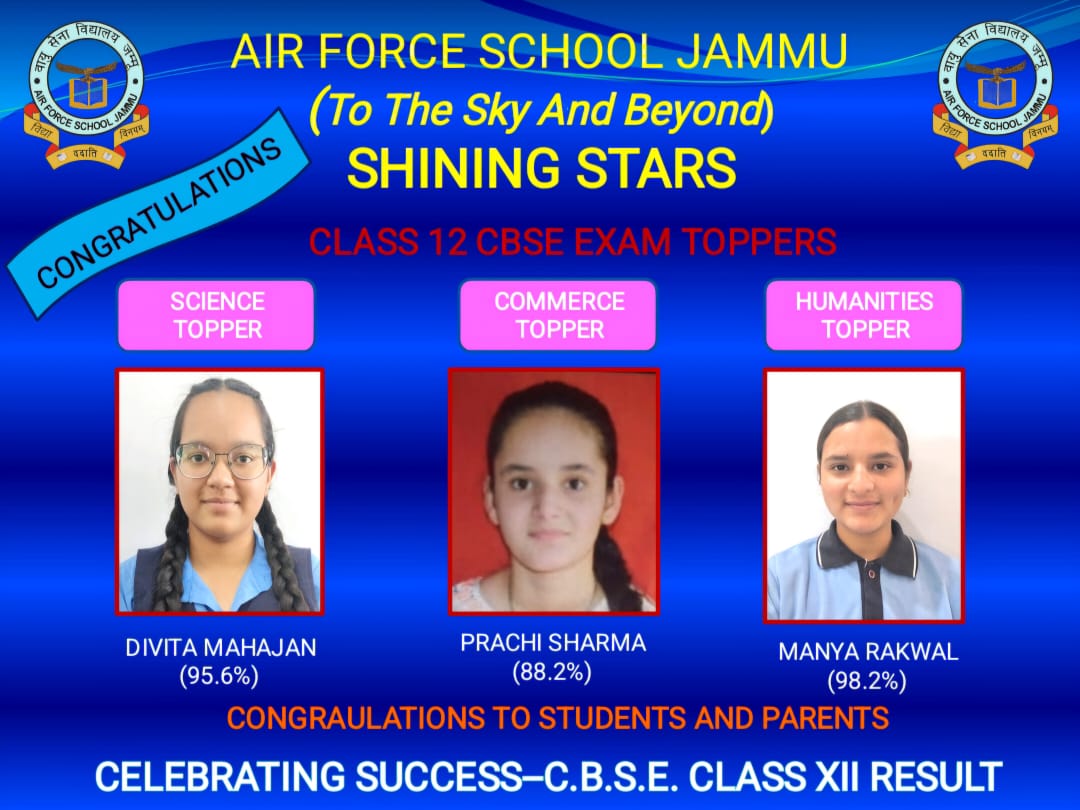 Air Force School Jammu, established in 1970 is being run under the aegis of IAF Educational & Cultural Society and is affiliated to CBSE New Delhi. The School is co-educational, English medium and runs classes from LKG to 10+2 (Science, Commerce and Humanities stream). It has ensured exceptional board results year after year. School has strived to develop and consolidate a quality education system without any rank or gender bias.