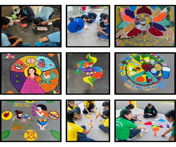 the theme “Healthy Plate.” Five participants from each house created colourful rangolis